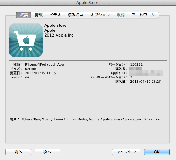 <購入したApple IDが分からない場合>最初に購入したApple IDが分からない場合、iTunesで確認する事ができます。1. iTunesでAppを表示させる2. Apple IDを確認したいアプリを選択して右クリック>情報を見るを選択する。購入したApple IDが表示されます。