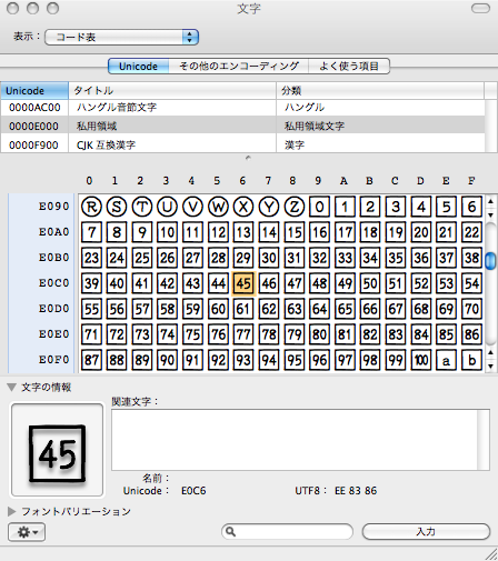 グリフとUTFの膨大な漢字一覧とにらめっこして