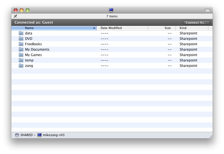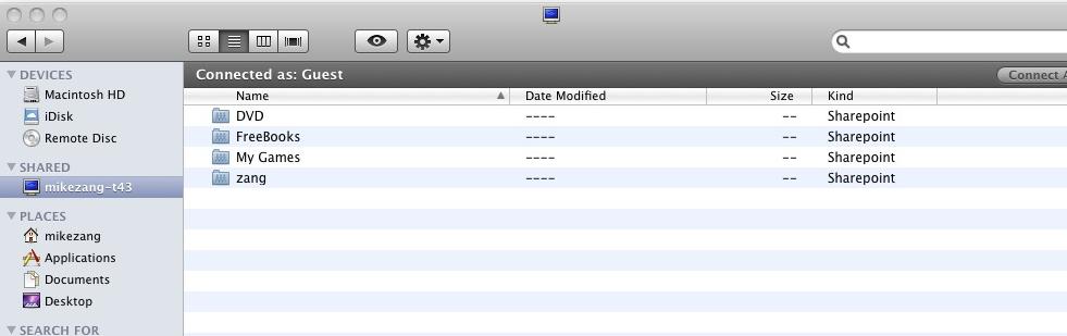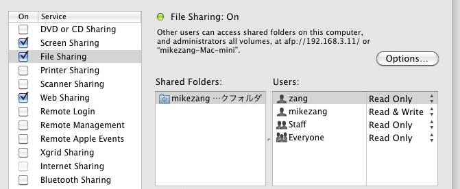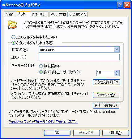 SMBで共有は良いと思うのですが,一番最初の画像をみますと,XP側の共有が"mikezang"で共有し,Mac側が"zang"になってます。