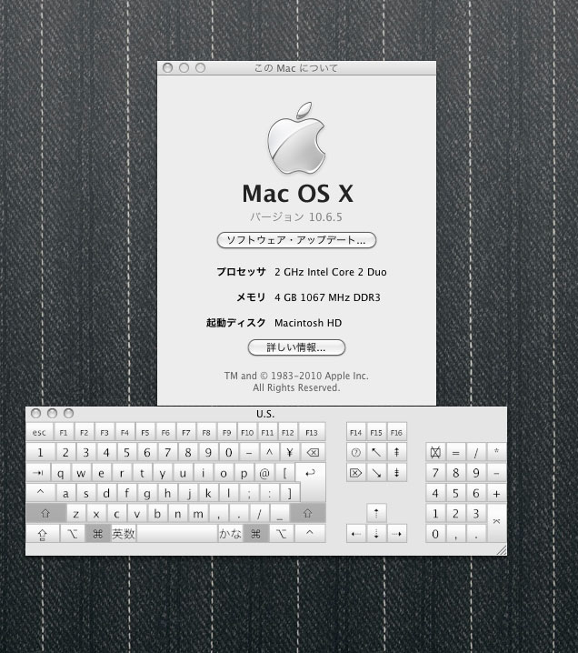 先日OSを10.6.5にアップデートしましてからキーボード右側にあります テンキーの0,.123の6個のキーだけが反応しなくなりました。