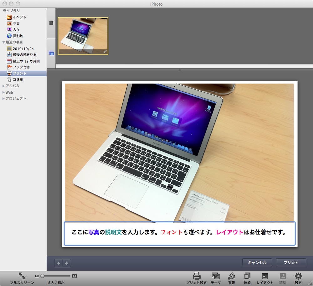 iPhoto (09). iPhotoにおいてある写真をiPhotoで編集する際に、写真に文字を書き込む(挿入する)ことはできないものでしょうか。