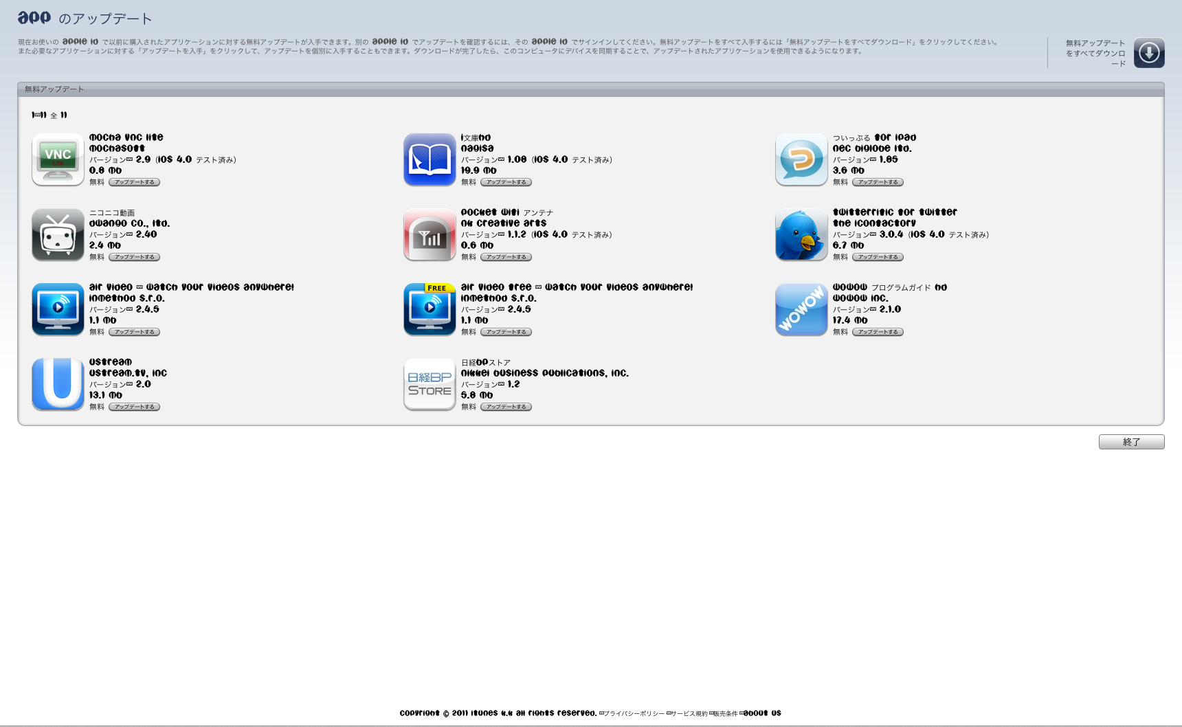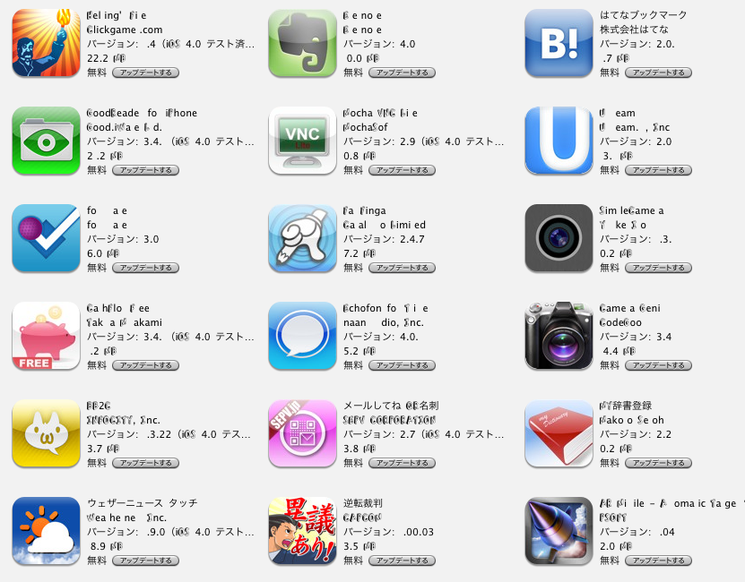 iTunes app アップデート 画面文字化け