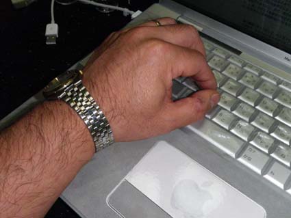 MacBook Pro を使う度にいちいち腕時計を外すと言うのは現実的ではありませんし、腕を浮かして入力すると言うのもやはり現実にはむずかしいでしょう。