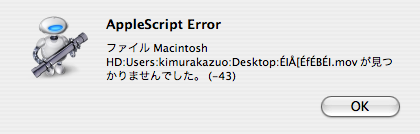 AppleScriptの日本語表示だけでなく、日本語ファイル名の分析に失敗