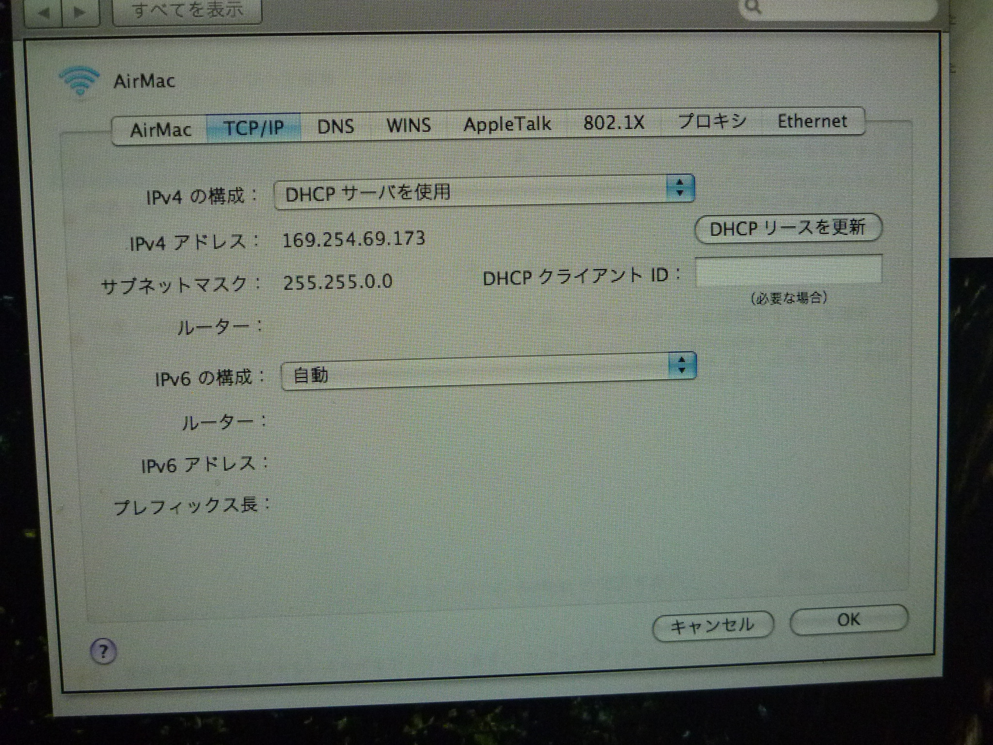 >AirMacで繋がっているなら、ここに出て来るアドレスはネットワークのTCP/IPで出ているものと同じになるはずで、「ipアドレスが不明」とは理解できません。