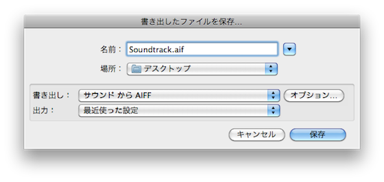 書き出し横のポップアップメニューからは、「サウンドから AIFF」にすれば iTunes に読み込めるはずです。