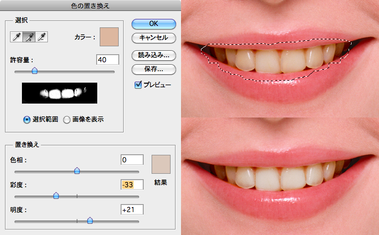web上のアプリ「Picnik」の歯を白くするブラシのような方法があれば良いのですが。