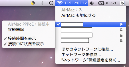 PPPoEだと接続状況とかのサブメニューが必要で、そのためのトライアングルで鍵が消えると…。でも、iOSデバイスではベースステーションにPPPoEを設定していても鍵マークは表示されますね。