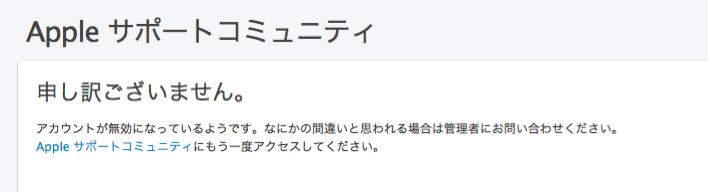 アカウントが無効になっているようです。なにかの間違いと思われる場合は管理者にお問い合わせください。