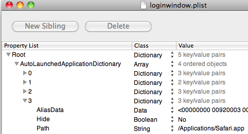 いぜれにせよ、起動項目に登録しているのに「Safari が起動しない」ということは、Mac OS X 10.6.8 Snow Leopard でも、Mac OS X 10.7.1 (11B26) [Lion] でもないようです。