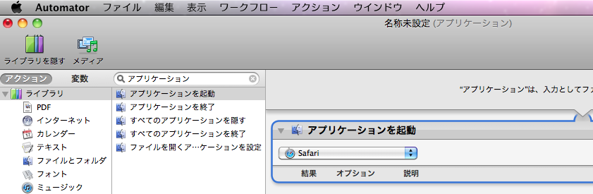 ”アプリケーションを起動”をダブルクリックする(ドラッグでも可)と右側に現れます。