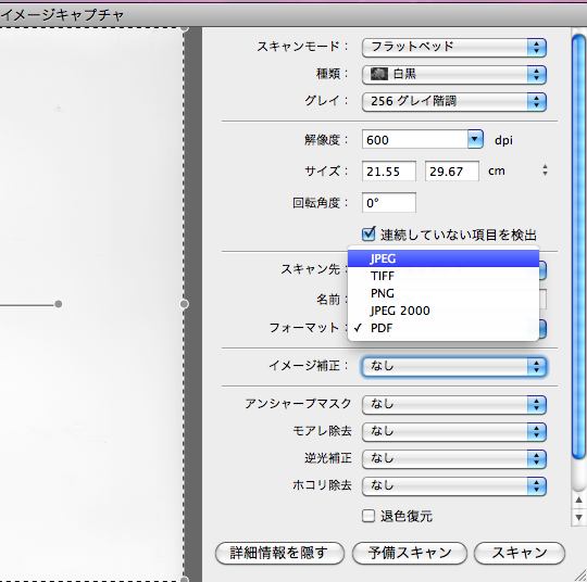 外していたらすみませんが、スキャンはイメージキャプチャでやっていると思います。