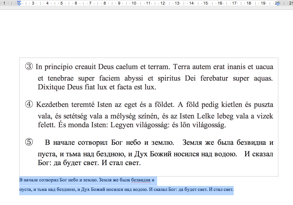 同じアルファベットでも、ラテン文字とキリル文字は少し系統が違います。そこで、ラテン文字(ラテン語とハンガリー語)とキリル文字(ロシア語)を混在させたテキストを作ってみました。