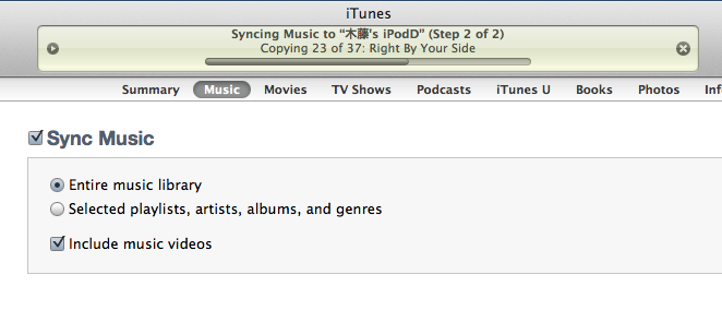 160Gのipodclassicを使っています。タイトルの通り、同期ボタンを押すと一瞬だけ「同期しています」 と表示されるのですがすぐに消えてしまい、データ自体も同期されないのです。