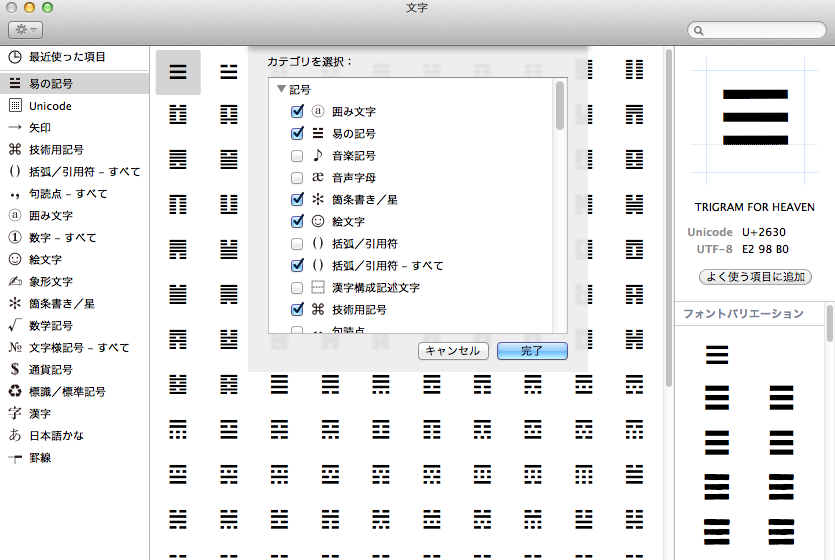 従って、推測はありますが、最新の Mac でも、何らかの方法(コード入力とか)で易の記号は入力・出力できるはずです。