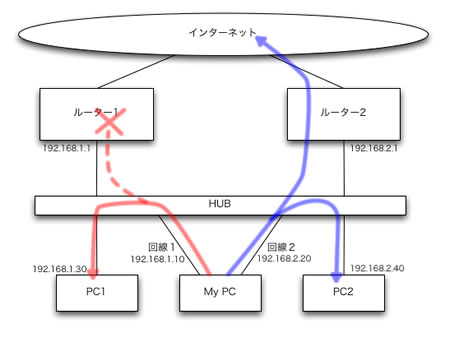 仮にそれらの回線を 回線1(有線)、回線2(無線)としますと