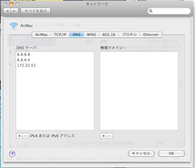 私の場合、AirMacの詳細設定のDNSに「8.8.8.8」と「8.8.4.4」を追加し、順序を上にしました。