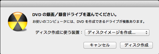 ちなみに、メニューバーのファイルのDVDを作成という場所も押せない(灰色文字)のままです。
