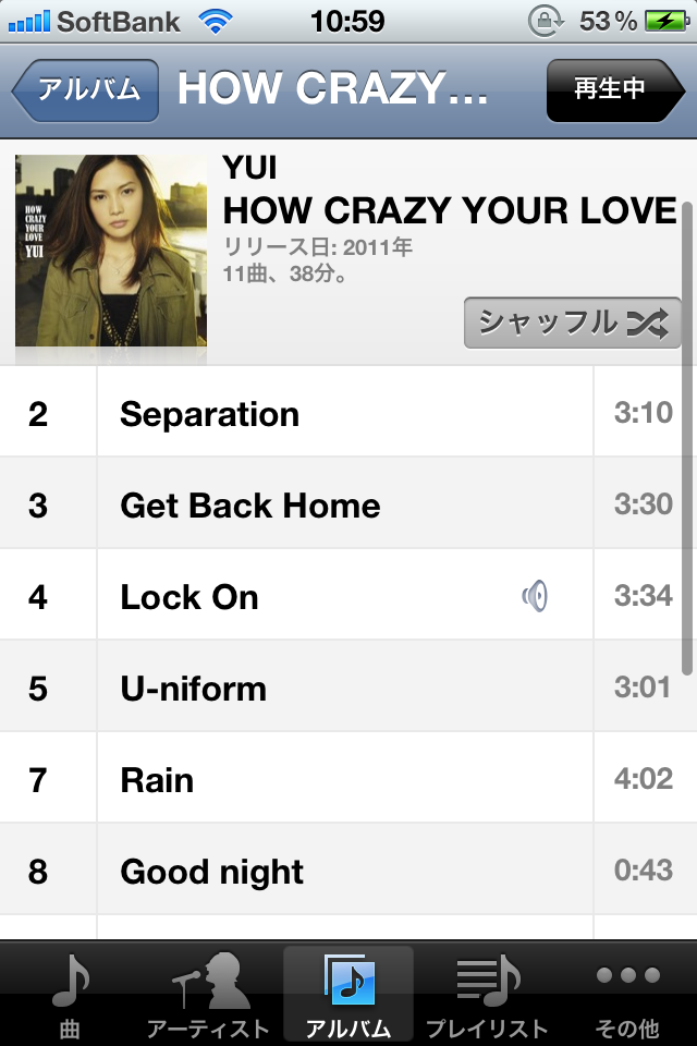 同期された曲を見てみると、iPhoneのミュージックで同期されていなかった曲は