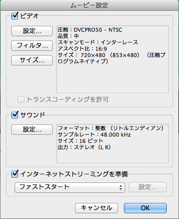 制作手順の「iMovieで[Quick Timeを使用して書き出す]」とき、DVD焼きが目的の場合は、[インターネットストリーミングを準備]は要りません。