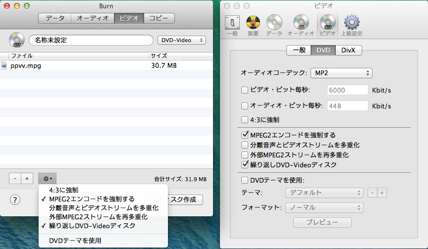 ここに記載されているような手順でMOVファイルをmpgにエンコードし、いざ焼くぞ、というところで止まってしまいました。