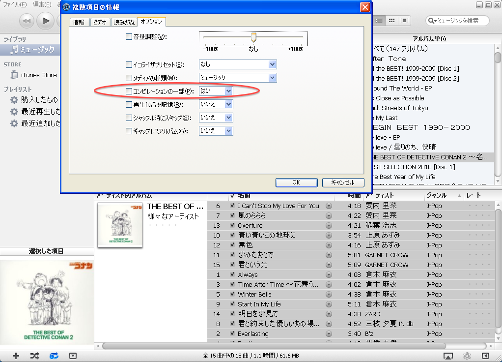 #コンピレーションアルバムならコンピレーションにチェックがよいでしょうし、そうでないならアルバムアーティストで対応とか。