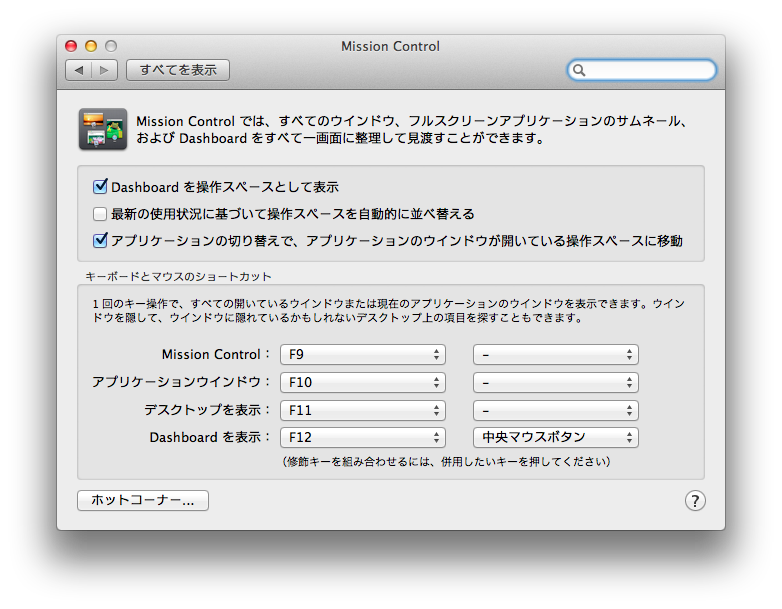あと、別アカウント(無ければシステム環境設定>ユーザとグループで作る)でログインすると、Mission Controlはどうですか?