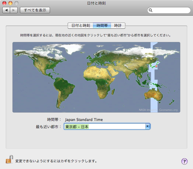 タイムゾーンを東京に設定したい