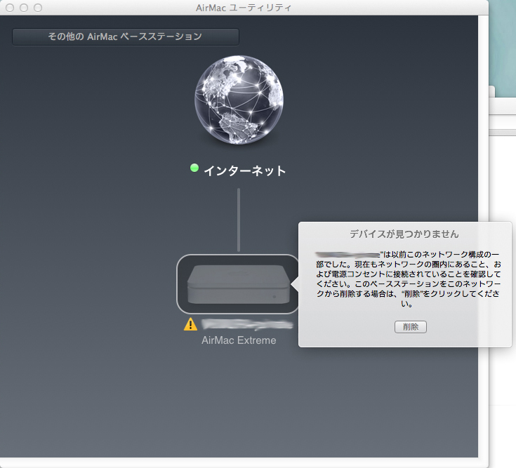 Mac側のAirMacユーティリティでは警告が出たままで、