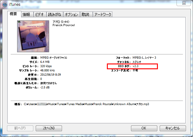 その音楽ファイルに、プロパティから 1)アーティスト名 2)アルバム情報 3)アートワーク を自分の手で書き換えたいのですが、iTunes上では書き換えた情報が表示されるものの、iPodには表示されず、「アーティスト情報なし」「アルバム情報なし」となってしまいます。