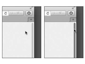 他のふたつの設定の場合は、スクロールバーの幅がわずかに広くなります。