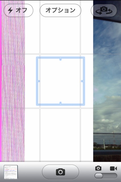 撮った写真ではなく、カメラアプリを立ち上げたときのスクリーンショットじゃ無いでしょうかね。撮った写真ならグリッド線なんて入らないし、ましてやカメラービデオの切り替えスイッチも写らないし、オフとかオプションとかのボタンも写らないのですよね。しかもeaxさんは