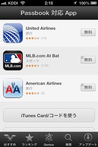 また,Passbook 経由でなければ,AppStore も iTunesStore も