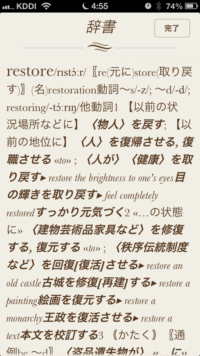 ほとんどの単語で英和辞典が表示されます。
