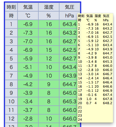 --- 表にマウスオーバーイベントを付ける(枠の強調表示と背景色の変化、TSVデータのタイトル表示)