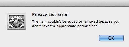 「プライバシーリストエラー:不明なエラーのため項目の追加または削除ができません。」 と表示され、「プライバシー」に追加できない。失敗。