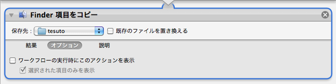 2,”finder項目をコピー”において、元のファイルと同じフォルダに保存する方法。