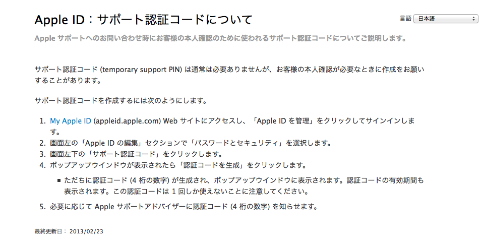 Apple - サポート - Apple ID - サポート連絡先