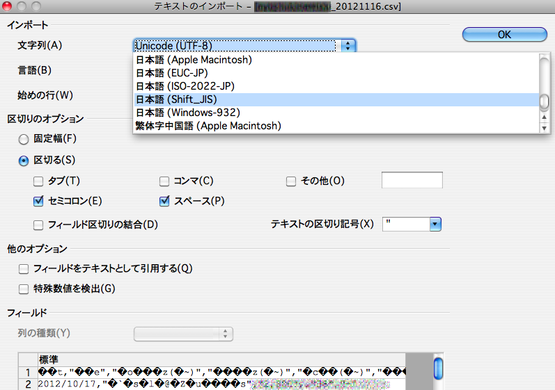 CSVでデーターを取り、Office 2011(英語バージョン)で開くと