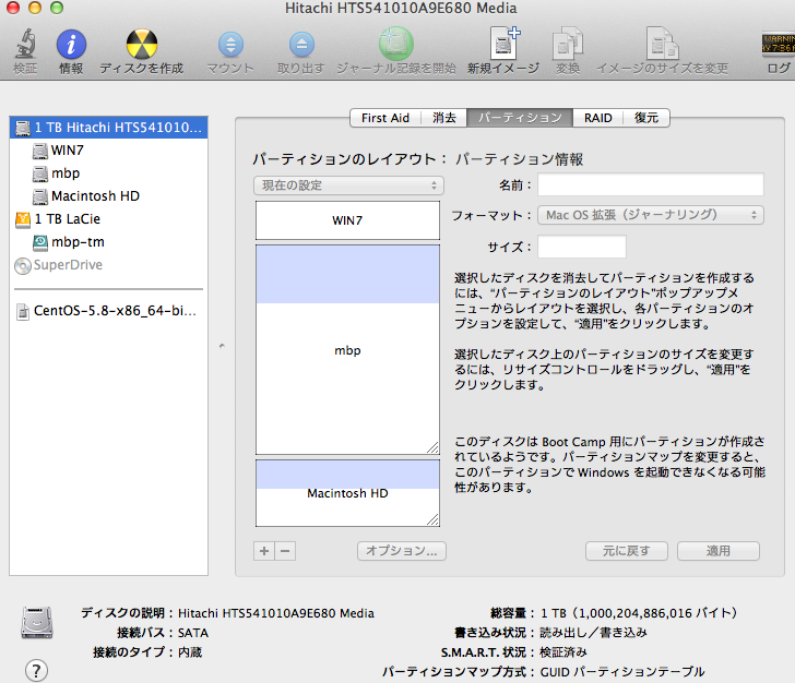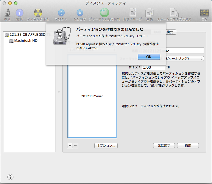 初期化の画面では1パーテーションで1TBにしたつもりですが、500GBしか容量がない(初期化できていない?)ような感じでした。