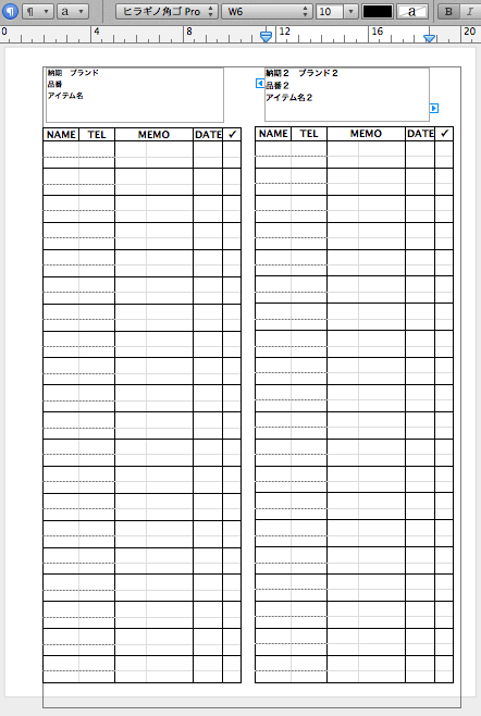 2)Pagesの方でページのサイズ幅を半分にして、印刷時のレイアウト設定で2ページ分を1ページに印刷する方法を試してみましたが、どういう訳か、二つの表が90℃回転した状態で1ページに収まる様なPDFが表示されました。