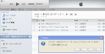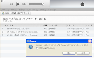 (インポート設定により、「AACバージョン」であったり、「Apple ロスレスバージョン」であったりなど、表示形式は異なります)
