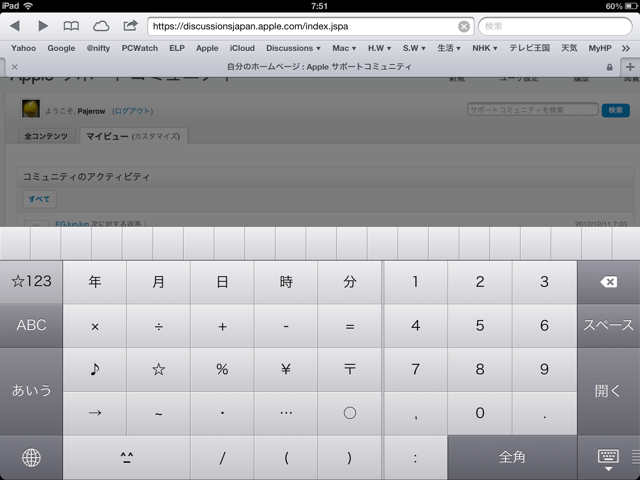 ユーザのユーザプロフィール: JeanLucPicachu JeanLucPicachu 作成者 ユーザレベル: レベル 1 4 ポイント 2012/12/11 12:44 Pajerow への返信 解決しました。日本語(かな)のキーボードにして、このボタンを長押しでキーボードを分割するとフリックが使える様になります。初代iPadでiOS5の時はかなキーボードとは別に日本語テンキーのキーボードが有ったのですが。 返信 リンク
