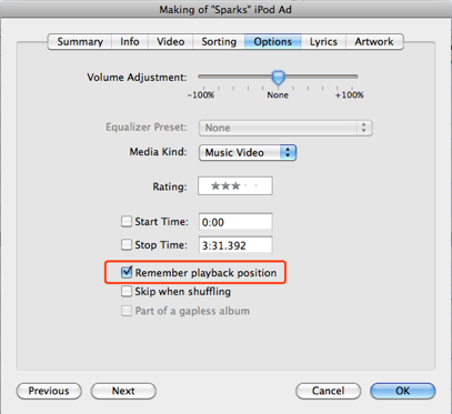 ・再生位置を記憶?(だっけ)のcheck boxを外す