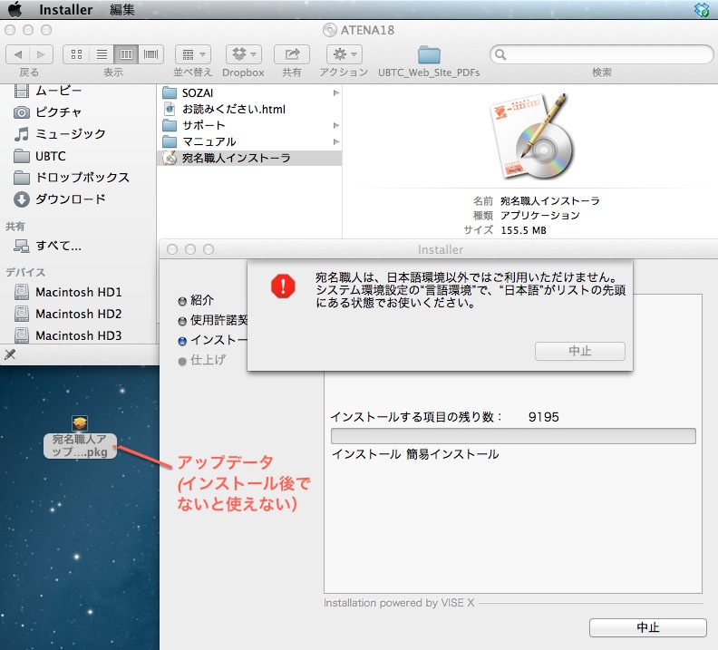 Adobe 社のサイトでは、Mac OS X の言語環境が日本語以外(英語など)になっているとの説明でしたが、