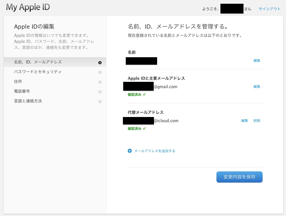 編集をクリックしても「Apple IDと主要メールアドレス」しか出てこず