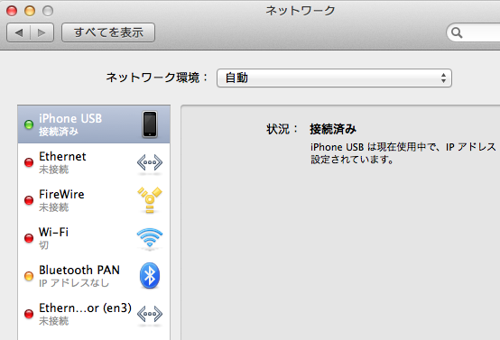 システム環境設定→ネットワーク→iPhone USB