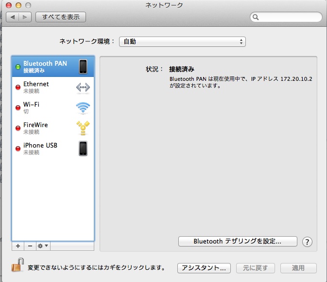 システム環境設定→ネットワーク→iPhone USB