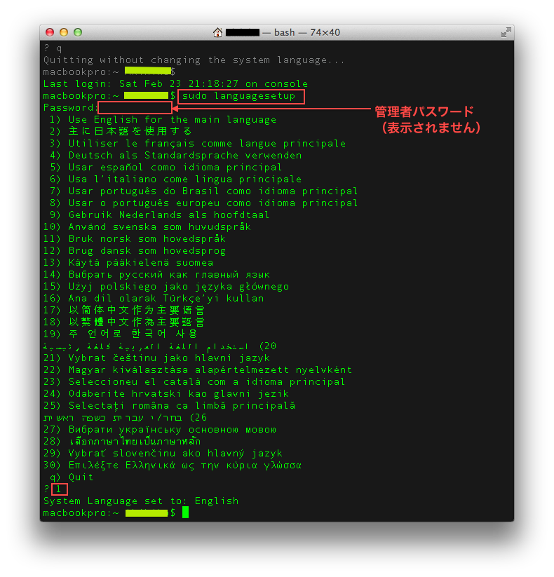 主人がMacKeeperなるものをインストールしたので、私もそれを使ったところ、なぜかスクリーン最上方のツールバー(というのであっていますか?)の表示がすべて英語に変わってしまいました。起動したばかりのときは日本語が出ているのですが、メールやサファリなどはもちろんどのアプリケーションを開けると英語になってしまい、また、メールアプリケーションで言えば「受信」「削除」などのフレーム上の言語も英語に、その他設定などの画面や「〜を承諾しますか?」のようなメッセージもすべて英語に変わってしまったので、やりにくくて仕方ありません。