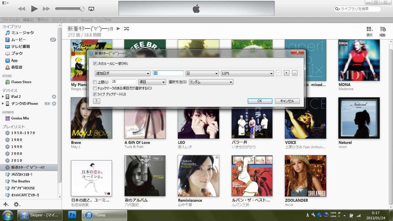ユーザのユーザプロフィール: bell bell 作成者 ユーザレベル: レベル 1 33 ポイント 2013/01/23 08:19 bell への返信 追加情報です。iPadと同期しました。iPadには意図した曲だけが同期されていました。当該のプレイリストの曲数。PC 272曲iPhone 490曲iPad 272曲 返信 リンク